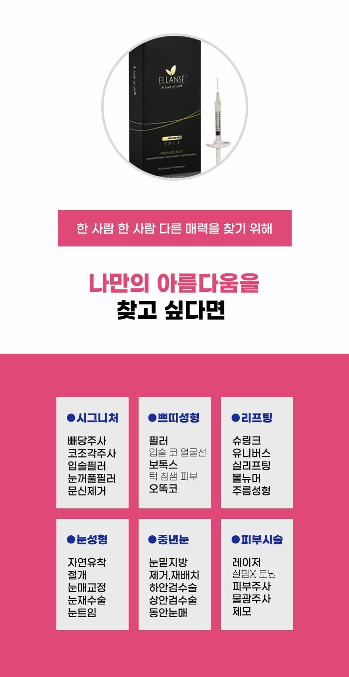 엘란쎄 리프팅 주사 관리의 경우 개개인의 얼굴형, 패임 등을 고려해 볼륨 관리를 진행하며, 리프팅 관리를 통해 꺼져 있는 볼륨을 채우는 것과 탄력 업그레이드를 함께 기대할 수도 있다고 합니다. 리프팅주사는 장점이 있는 관리이지만, 개인의 피부 특징, 중점적인 고민 등은 다른데요, 그렇기에 나에게 맞는 관리일지 충분히 확인하고 진행하셨으면 좋겠습니다.
