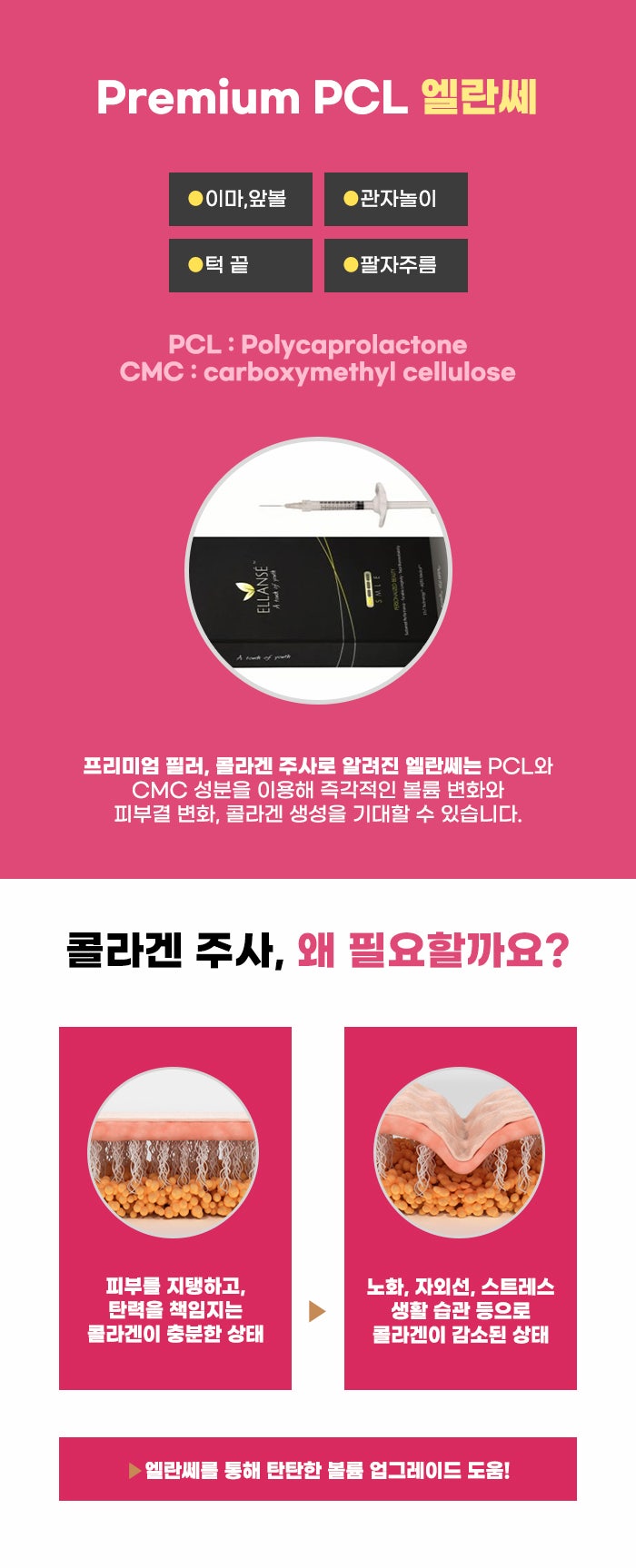 또한 현재 리쥬란힐러 관리에 대해서 관심을 갖고 있는 분이라면 물광주사 등 다른 피부 주사 관리, 그리고 엘란쎄 리프팅 관리 등에 대해서도 궁금한 점이 있을 것 같습니다. 엘란쎄는 CMC 겔 캐리어 성분과 PCL 성분을 이용하는 콜라겐 필러 관리로도 알려져 있다고 하는데요.