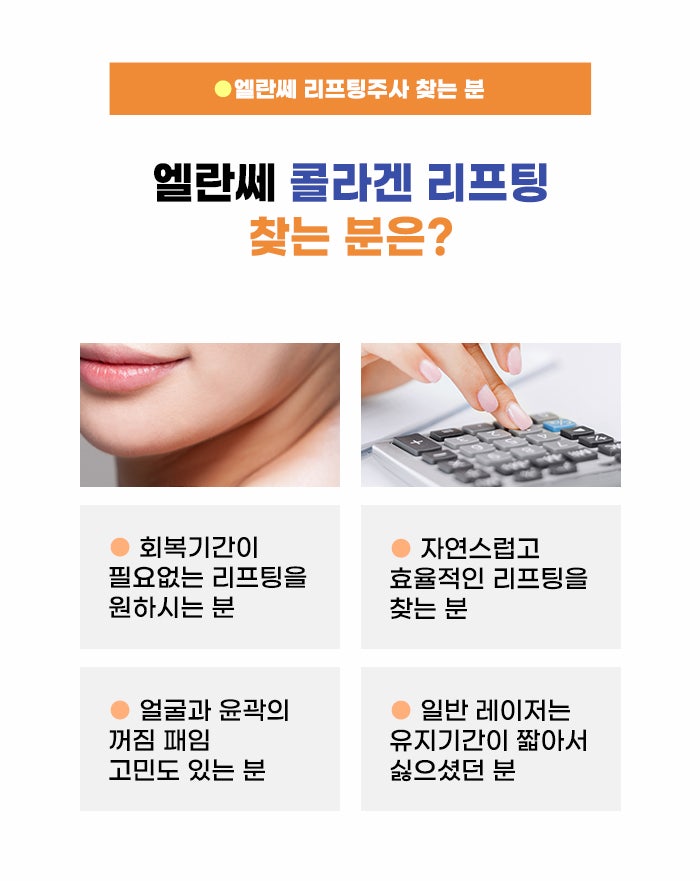 또한 리프팅 주사 관리와 엘란쎄 리프팅 필러 관리로 컨투어링을 함께 진행할 수도 있다고 하는데요. 볼륨이 부족한 곳, 패임이 있는 곳을 채우기 위한 엘란쎄 필러 관리를 함께 하며 압구정 엘란쎄 리프팅주사 관리를 올바르게 진행한다면 더 뚜렷한 차이를 느낄 수도 있다고 합니다. 그렇기에 현재 지친 피부, 볼륨이 줄어든 피부로 고민하는 분의 경우에도 압구정 엘란쎄 리프팅주사 관리를 택할 수도 있는 것 같습니다.