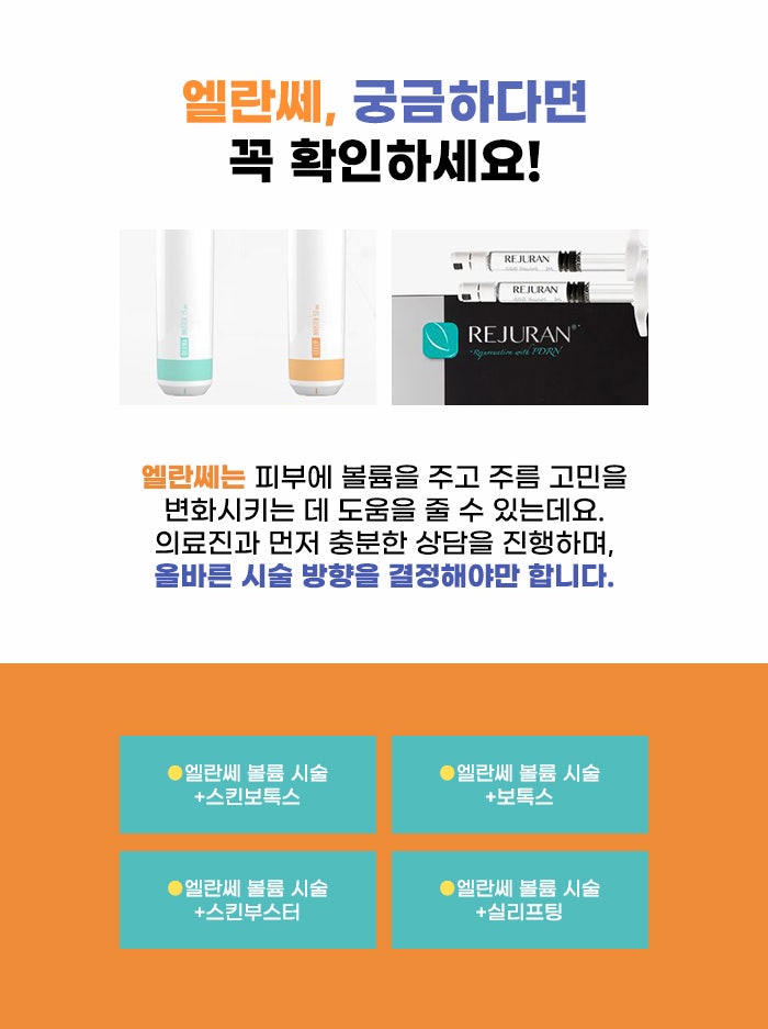 또한 강남 리쥬란 추천 정보 알아보는 분의 경우 얼굴선 패임, 얼굴형에 대한 고민을 갖고 있는 분도 있을 것 같습니다. 이때 나이를 먹으며 밋밋해진 얼굴형, 패인 얼굴선 등에 변화를 만들기 위해 필러 관리를 찾기도 하는데요. 이때 엘란쎄는 더 탄탄한 볼륨, 더 오래가는 볼륨, 찍힘, 밀림 등에 대한 걱정이 적은 볼륨을 생성하는 것을 기대할 수도 있다고 하니 참고하셨으면 합니다!