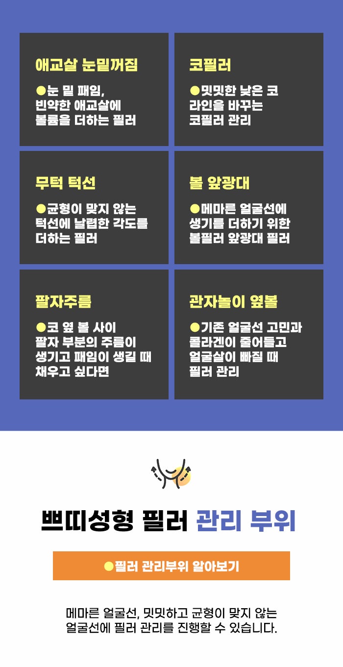 현재 리프팅 관리를 알아보는 분의 경우 볼 옆 패임, 밋밋해지고 볼륨이 줄어든 얼굴선에 대해 고민을 가진 분도 있을 것 같은데요. 또한 주름이 더 깊게 패이는 것에 대한 고민, 팔자주름이 깊어지는 것에 대한 고민도 있을 수 있습니다. 이런 경우 강남 리프팅주사 엘란쎄 관리만이 아니라 필러 관리에 대해서도 알아보셨으면 좋겠습니다.