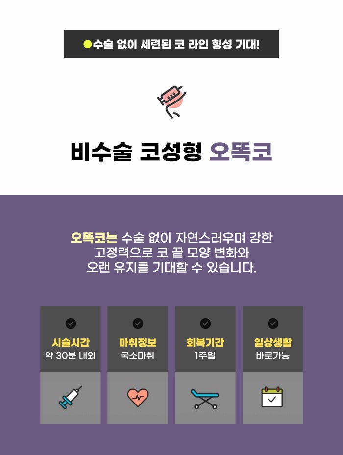그리고 낮은 코나 밋밋한 얼굴에 대한 고민이 있을 때 쁘띠성형 관리 중 정말 많은 분이 찾는 게 필러인 것 같은데요, 코 모양이 고민인 분의 경우에도 강남역성형외과 코필러 정보를 알아보기도 합니다. 그런데 일반적인 코필러의 경우 퍼짐, 모양 고정이 잘되지 않는 것 등에 대한 걱정이 있을 수도 있는데요. 하지만 오똑코와 필러 관리를 함께하며 더 나은 고정력과 라인 변화를 기대할 수도 있다고 합니다.