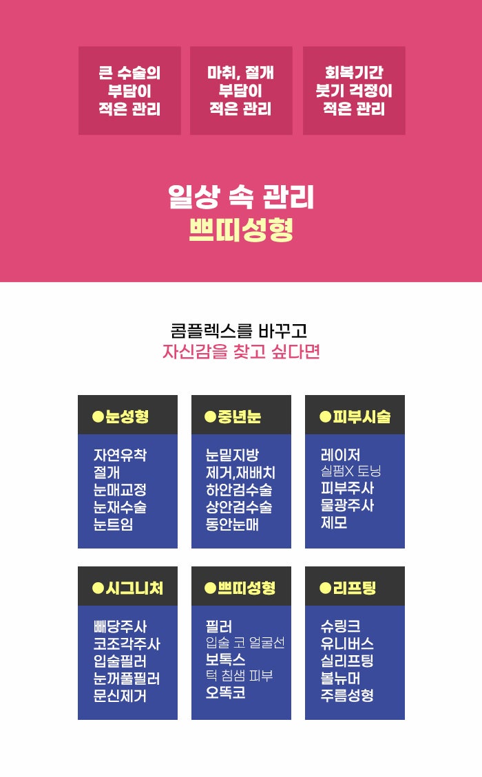 보통 성형 수술이라고 하면 절개를 하고 봉합을 하는 방식, 코성형 수술처럼 단단한 보형물을 삽입하고 코를 높이거나 뼈를 줄이는 방식을 떠올리는 경우가 흔한 것 같습니다. 특히 다양한 성형 수술 중에서 코성형은 정말 많은 분이 관심을 가지는 분야인 것 같은데요. 그만큼 코성형을 결정하는 분도 많은 것 같습니다. 하지만 코에 대해서 컴플렉스가 있다고 해도 모든 분이 코성형을 결정할 수 있는 상황에 있는 것은 아닙니다.