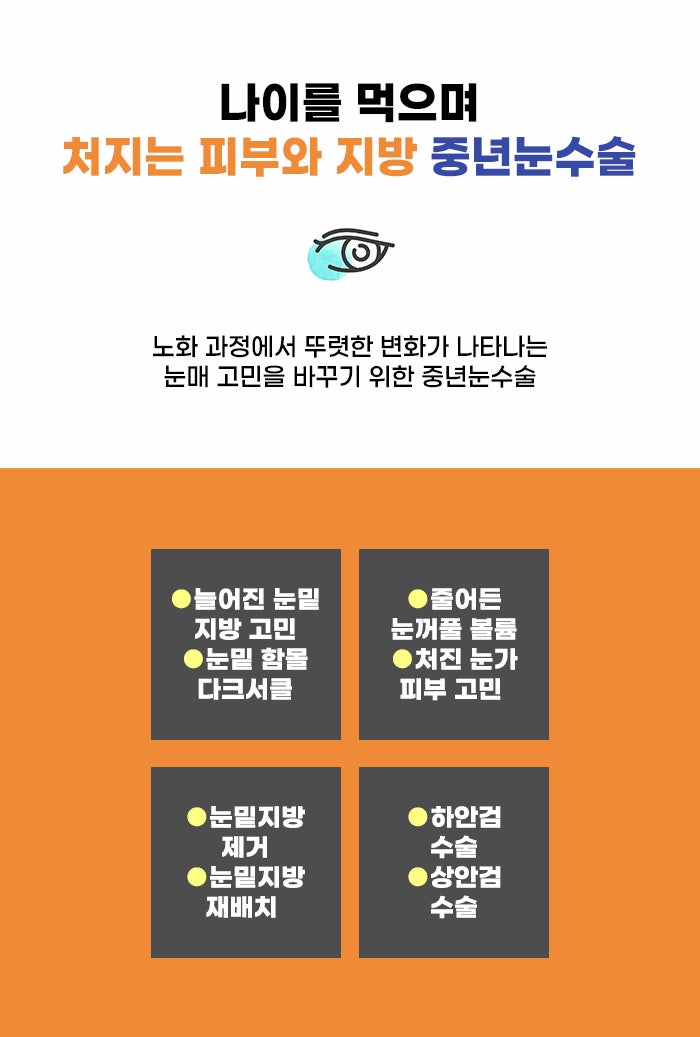 그리고 눈 아랫부분의 피부만이 늘어지고 처지는 게 아니라 눈을 감을 때 사용되는 눈꺼풀의 볼륨이 지나치게 줄어들거나, 눈꺼풀이 늘어지고 처지는 경우가 있습니다. 이런 경우 시야 방해, 짝눈, 눈 짓무름 등의 고민이 생길 수도 있는데요. 불필요한 눈꺼풀을 절개하는 상안검 수술, 볼륨이 필요한 눈꺼풀에 주사 관리로 볼륨을 추가하는 눈꺼풀 필러 등을 결정할 수도 있다는 점! 참고하셨으면 합니다.