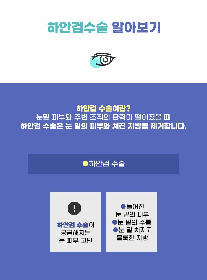 하안검 수술은 피부 절개를 통해 지방, 근육, 불필요한 조직, 피부 등을 절제하는 방법이라고 합니다. 그렇기에 약간의 눈 밑 당김이 느껴질 수도 있다고 하는데요. 이런 당김이 자연스럽게 사라진다면 큰 문제는 아닐 것입니다. 하지만 강한 당김이 있다면 문제가 되는데요. 처음부터 안검외반이나 강한 당김이 생기지 않게 섬세한 디자인과 적정량 절제를 하는 곳인지 알아야 하겠습니다. 눈매에 대한 고민은 겉으로 보기에 비슷해 보여도 실제로는 각기 다른 특징이 있을 수 있는데요. 이런 점을 꼼꼼히 살펴보셨으면 합니다!