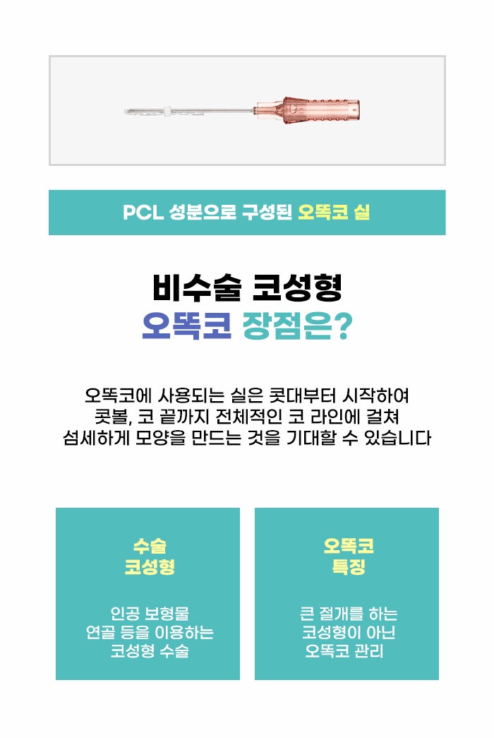 그리고 코 높이에 대한 고민을 가진 분도 있습니다. 코를 높이고 싶을 때 단단한 보형물을 삽입하는 절개 방식 수술을 선택할 수도 있습니다. 하지만 모든 분이 수술을 할 수 있는 것은 아닌데요. 인공 보형물을 이용하는 절개 방식보다 간단한 방식으로 코를 높이고 싶고, 코 모양을 바꾸고 싶은 분이라면 오똑코 관리의 장점에 대해서도 체크하셨으면 합니다.