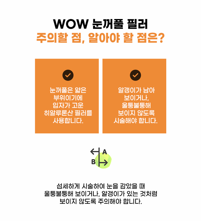 눈꺼풀 꺼짐에 대한 고민이 있는 분이라면, 이 글을 통해 눈꺼짐 고민을 줄일 수 있었으면 좋겠는데요, 아래의 이미지를 참고해 눈꺼짐 필러 관리 과정을 살펴보시길 바랍니다! 눈은 마음의 창이라는 별명이 붙어 있기도 할 정도로 생각과 감정이 드러나는 부분이기도 합니다. 또한 앞을 봐야 하는 부분인 만큼, 몸에서 옷으로 감싸질 수 있는 다른 부분과 달리 늘 노출되어 있는 부분이기도 합니다.