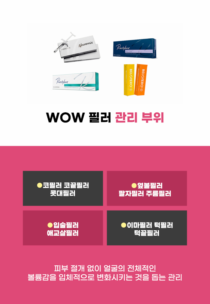 필러 관리는 대표적인 쁘띠 성형 관리 중 하나로 알려져 있습니다. 주사 관리로 히알루론산 필러 제제 등 약물을 주입하고, 볼륨이 필요한 부분에 볼륨을 더해주는 관리로 알려져 있는데요, 관리 부위, 과정, 개인에 따라서 세부적인 결과나 부기 등은 다를 수 있지만 일반적으로 빠르게 관리를 받고 즉각적인 변화를 느낄 수 있는 편입니다.