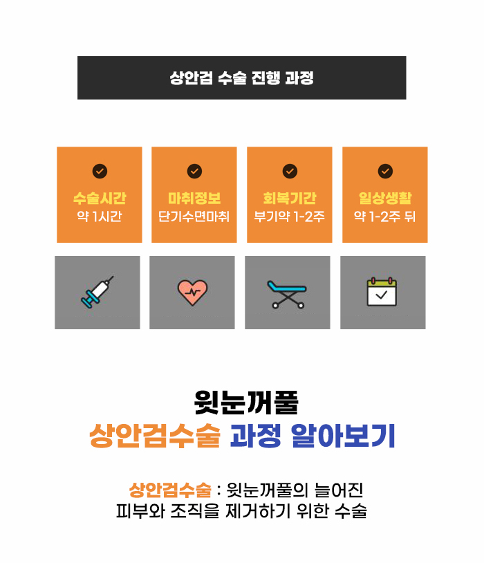 눈꺼풀 늘어짐, 눈 밑 늘어짐 등이 생겨 고민이라면 이 페이지의 이미지를 살펴보면서 상안검 수술 과정에 대해서 살펴볼 수 있었으면 합니다! 상안검 수술은 다양한 장점을 갖고 있는 수술이라고 하는데요, 선명한 동안 눈매를 갖기 위해 강남 상안검 수술 결정하는 분이 많은 것 같습니다.