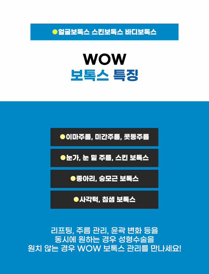 얼굴에 살이 많아 얼굴이 커 보이거나 울퉁불퉁한 얼굴선을 가지기도 하지만, 그렇지 않은 경우도 있는데요, 근육이 큰 편이거나 침샘비대증이 있는 편이라서 얼굴이 더 커 보이는 경우도 있습니다. 이런 경우 보톡스 관리를 통해 과도하게 커진 저작근을 줄이고 날렵한 턱선을 갖는 것도 기대할 수도 있습니다.