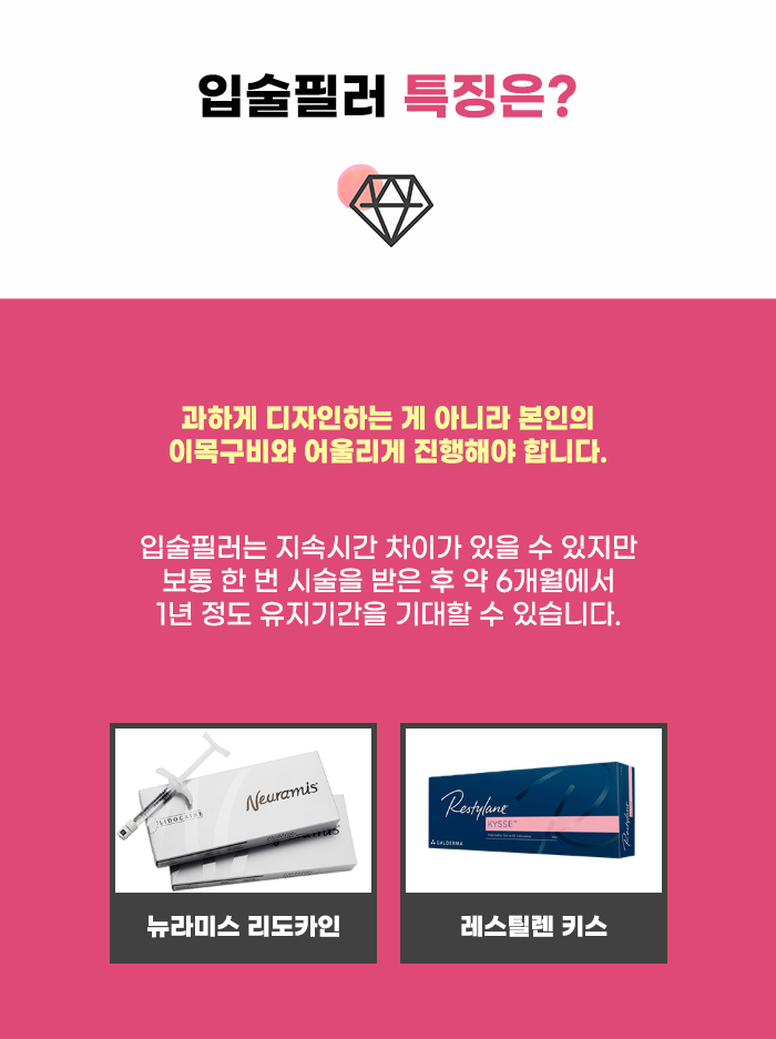 그렇기에 통증 걱정이 적은 편이며 긴 유지기간을 기대할 수도 있다고 합니다. 현재 필러 관리에 대해서 관심이 있는 분, 특히 입술의 필러 관리를 통해 자신감을 찾고 싶은 분이라면 나의 얼굴에 어울리는 변화를 느낄 수 있었으면 좋겠습니다~