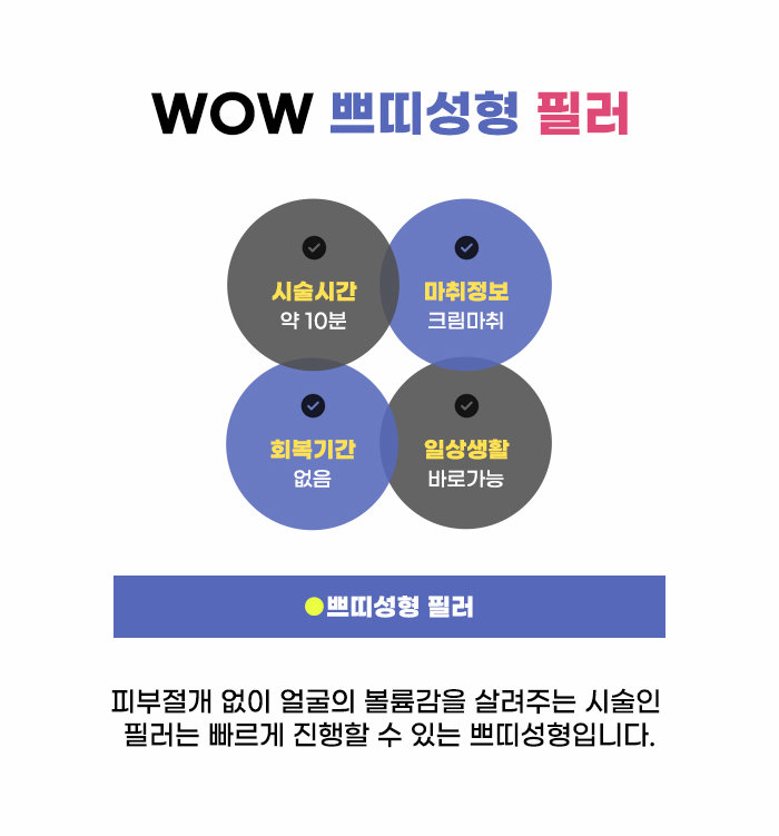 수술적인 방법을 결정할 수도 있지만, 절개를 크게 하거나, 회복기간 과정이 부담이 되는 수술을 선택하고 싶지 않아 하는 경우도 있는데요, 혹은 수술을 이전에 했지만 다른 방법으로 보완하고 싶은 분도 있고, 수술을 하고 싶어도 상황상 수술을 진행하지 못하는 분도 있습니다. 이런 분이라면 쁘띠성형 필러에 대한 관심이 많을 것 같습니다.