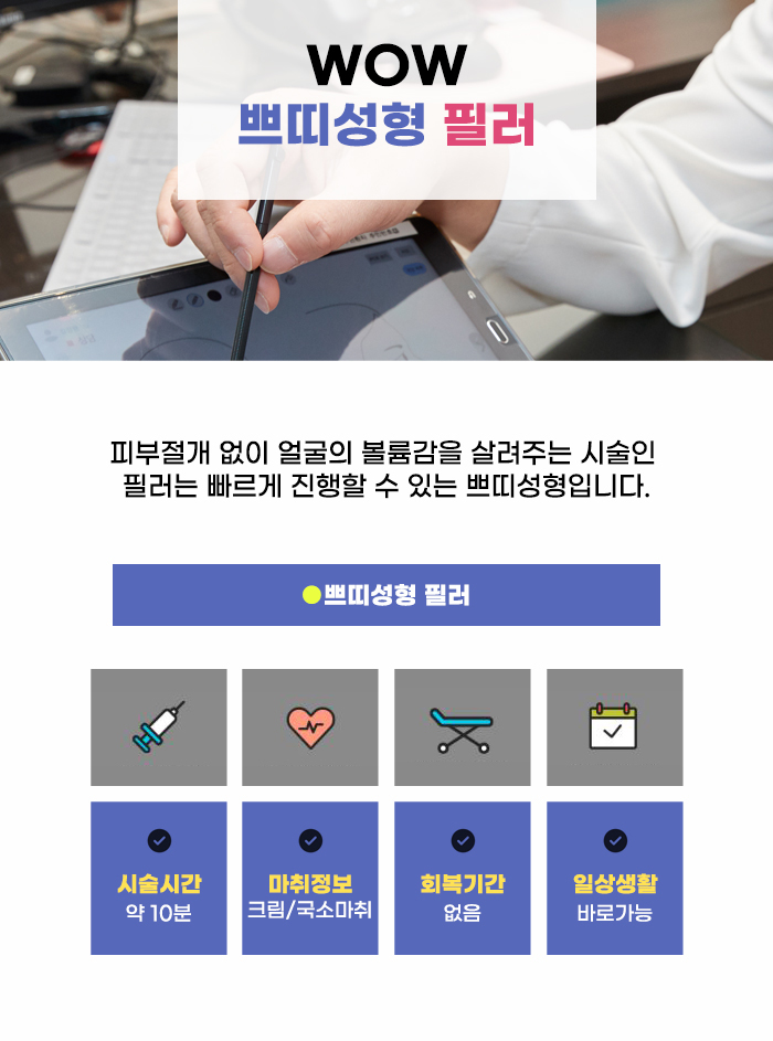 눈꺼풀 필러의 경우 히알루론산 필러를 이용한다고 하는데요, 당일에는 원하는 것보다 볼륨이 부족하게 느껴질 수도 있습니다. 하지만 시간이 지나면서 필러제가 부풀어 오르고 더 차오르는 볼륨을 기대할 수 있는 편이라고 합니다. 또한 둥근 캐눌라 바늘을 이용해 관리를 하는 곳인지도 꼭 체크해 보셨으면 좋겠습니다.