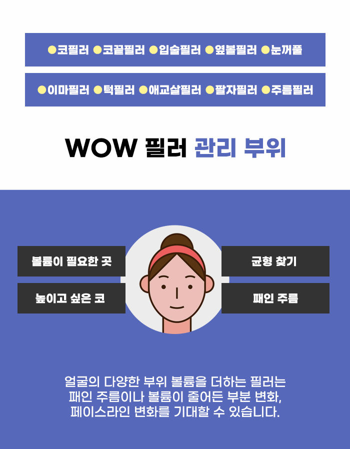 입술필러 외에도 이마 라인에 볼륨감을 주며 고급스러운 이미지를 갖고 싶어하는 분도 있고, 코 라인에 변화를 주면서 볼륨있는 얼굴선을 갖길 원하는 분도 있는데요, 눈 밑 애교살 같은 경우 작은 부분이지만 이 부분의 볼륨이 없을 경우 밋밋한 인상을 줄 수도 있어서 애교살 필러 관리를 찾기도 합니다. 또한 노화가 진행되면서 옆볼살이 꺼지고 광대가 더 두드러져 보이는 게 스트레스일 때도 있는데요.