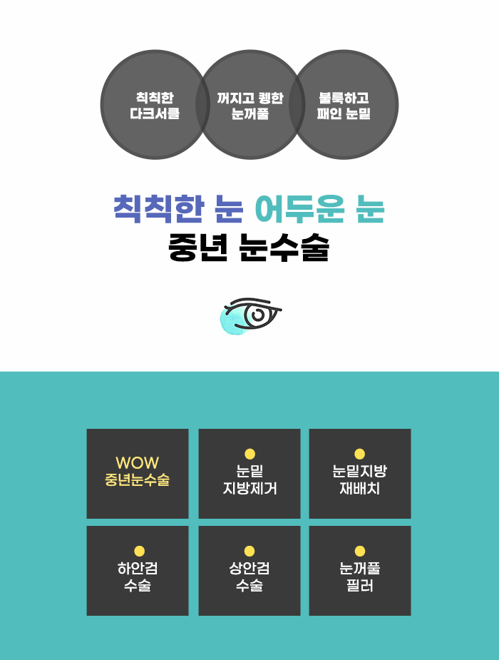 볼륨이 줄어드는 것 말고도, 눈꺼풀 피부의 주름, 늘어짐, 그리고 눈가 짓무름이 고민되는 경우도 있습니다. 그리고 눈 밑 피부의 늘어짐과 주름이 스트레스가 되는 경우도 있는데요. 눈꺼짐 필러 관리를 찾고 있다면 다른 중년을 위한 눈수술이 나에게 필요한 상태는 아닌지도 알아보셨으면 합니다!