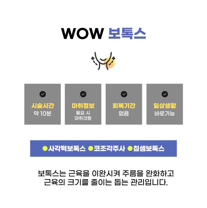그리고 강남 리쥬란힐러 관리 알아본다면, 시너지를 내고 내 고민을 더욱 변화시킬 수 있는 다른 관리를 할 수 없는지도 확인하셨으면 하는데요, 근육의 크기를 줄이는 변화를 기대할 수 있는 보톡스는 눈가, 눈 밑의 주름, 이마와 미간, 콧등 주름 등의 변화를 위해서도 사용된다고 합니다. 리쥬란힐러와 나의 피부 고민에 맞는 관리를 통해 자신감을 찾았으면 합니다!