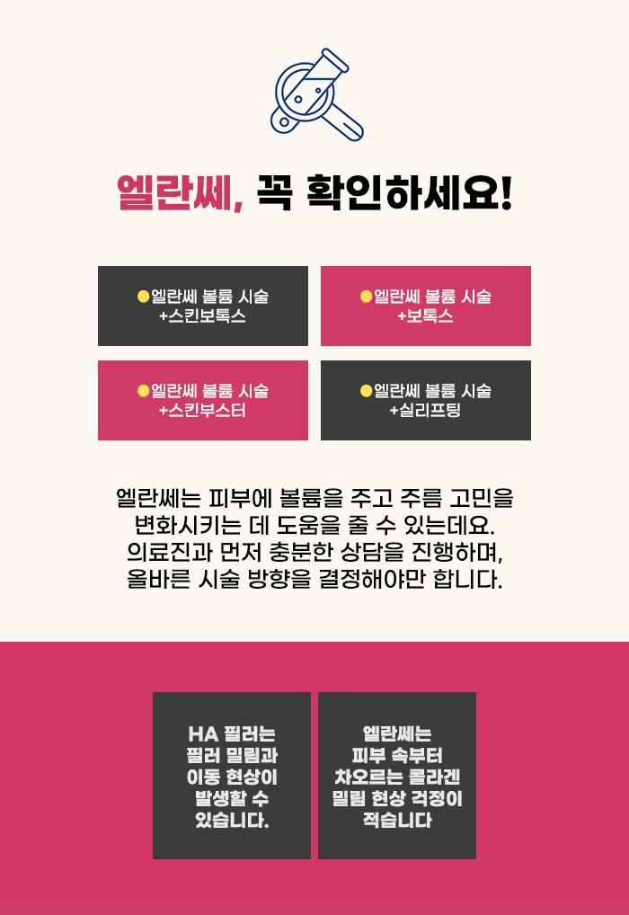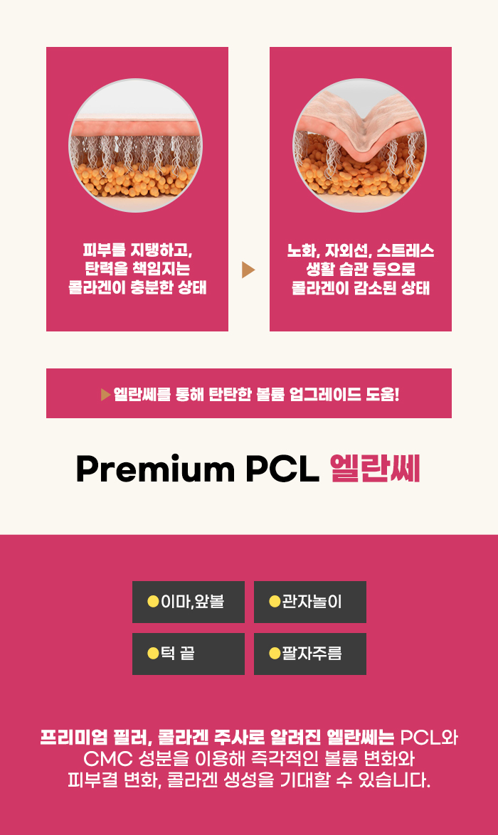엘란쎄는 보통의 필러와 다른 점이 있습니다. 더 작은 용량으로 충분한 볼륨 형성을 기대할 수 있다는 점, 일반적인 필러에 비해 비용이 더 비싼 편이라는 점, 필러 관리를 진행하고 난 후에, 엘란쎄는 더 오랜 유지를 기대할 수도 있다는 점 등의 특징이 있는데요, 이는 엘란쎄가 단순히 현재의 볼륨을 채우는 것만이 아니라, 탄탄한 콜라겐을 형성하는 것도 도울 수도 있는 성분이기 때문입니다.