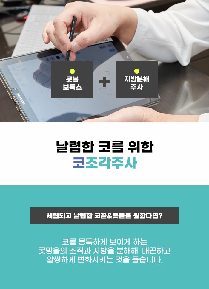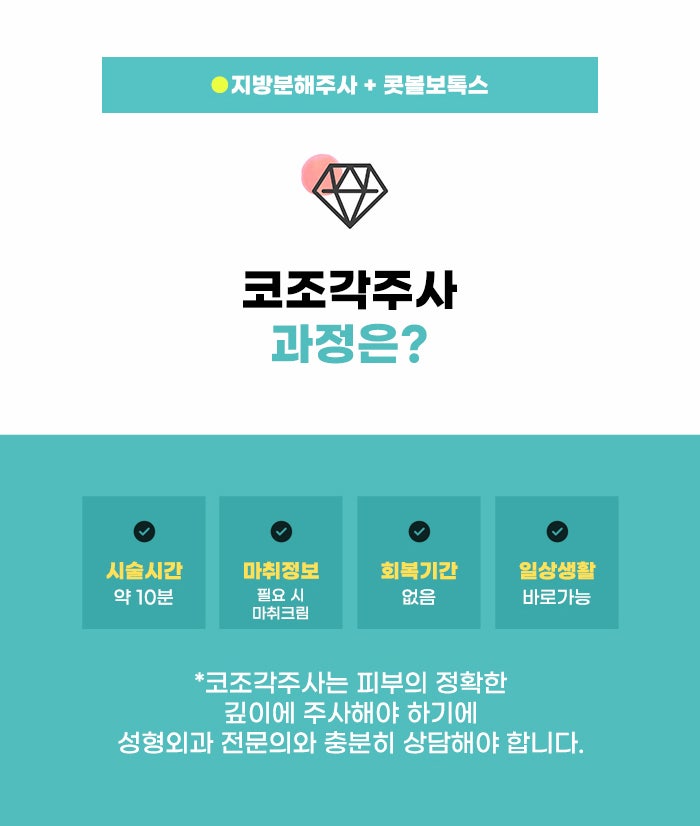 그리고 영구적인 변화를 만드는 방법이나, 수술 과정의 부담이 큰 방법을 택하는 게 아니라 현재 내 코 모양의 매력을 살리면서, 날렵한 라인을 만드는 것을 기대할 수 있는 방법을 찾기도 하는데요, 이런 경우 강남 콧볼축소 코조각주사 관리에 대해서 알고 싶을 수 있습니다. 코조각주사는 지방분해 주사와 콧볼 보톡스를 이용하는 방법이라고 합니다.