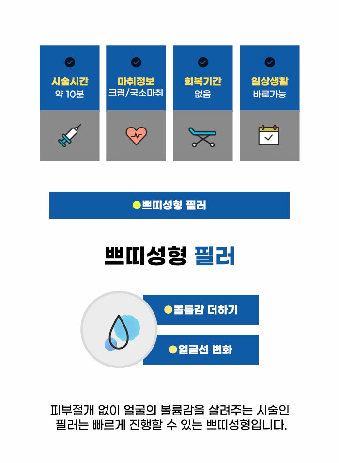 쁘띠성형은 여러 상황에서 쉽게 결정할 수도 있는 관리인데요. 특히 필러 관리는 쁘띠성형 관리 중 대표적으로 많은 분이 찾고 있는 관리입니다. 이 관리의 경우 피부를 절개하는 것에 대한 걱정이 적고, 또 마취, 회복 기간 등에 대한 걱정이 적은데요. 그러면서 즉각적인 변화를 느낄 수도 있다 보니 필러 관리를 찾는 분이 늘어나고 있다는 생각도 듭니다.