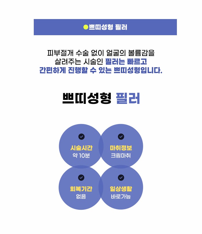 쁘띠성형을 찾는 분은 두 가지 이유 중 하나에 속하는 분이 많은 것 같은데요. 기존의 내 얼굴에서 단점을 보완하기 위해서, 거슬리는 콤플렉스를 바꾸기 위해서 쁘띠성형을 찾는 분이 있으며, 현재 내 모습에서 다른 이미지를 추구하기 위해서 쁘띠성형 방법을 찾는 분이 있는 것 같습니다. 필러의 경우 이 다른 종류의 고민을 가진 분 모두가 찾는 관리이기도 합니다.