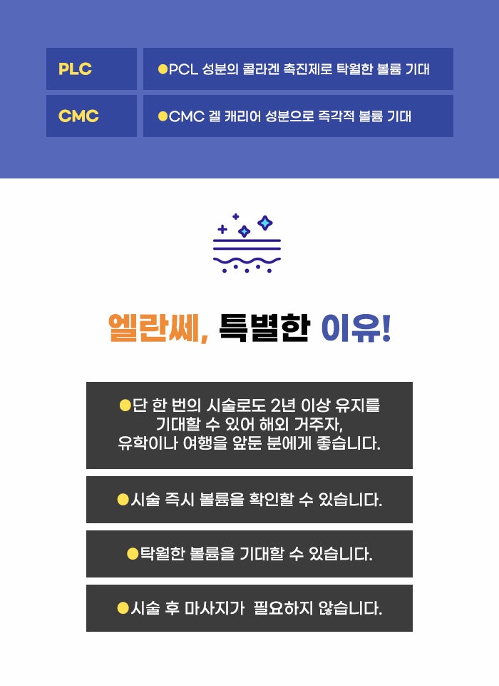 자주 방문해 피부 관리를 받고 싶어도 바쁜 분이나 유학생, 해외 거주자의 경우에는 쉽지 않은데요. 하지만 엘란쎄 필러 같은 경우에는 한 번의 관리로 2년 정도의 유지글 기대할 수도 있다고 합니다. 사람에 따라서 유지 기간, 변화는 다를 수 있지만 상당히 오랜 유지와 함께 탄탄한 볼륨를 기대할 수 있다 보니 빠르고 오래 가며, 피부에 부담이 적은 관리, 탄탄한 볼륨을 유지할 수 있는 관리를 찾는 분도 엘란쎄 정보를 알아보고 있습니다.