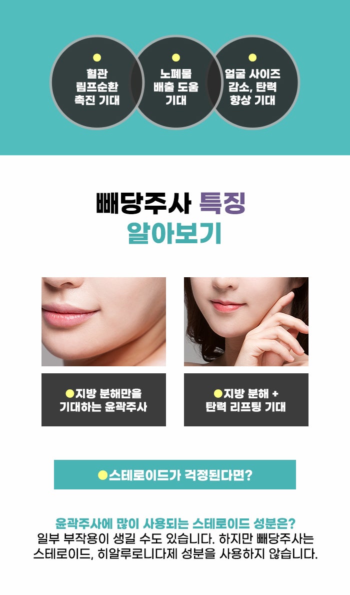지금 강남 옆볼필러 추천 알아보는 분의 경우 얼굴 전체적으로 봤을 때 균형이 맞지 않는 지방 분포가 더 문제가 되는 경우도 있습니다. 얼굴의 지방이 처지고 피부 탄력도 줄어들 경우, 이중턱, 늘어진 턱선 고민을 하기 쉽습니다. 그런데 옆볼의 볼륨은 줄어들면서 얼굴 지방 분포 대비가 더 강해 보일 수도 있는데요. 필요한 볼륨은 더하고 불필요한 지방은 빼고 싶다면 강남 옆볼필러 추천 엘란쎄 정보와 함께 빼당주사 정보도 확인해 보시길 바랍니다.
