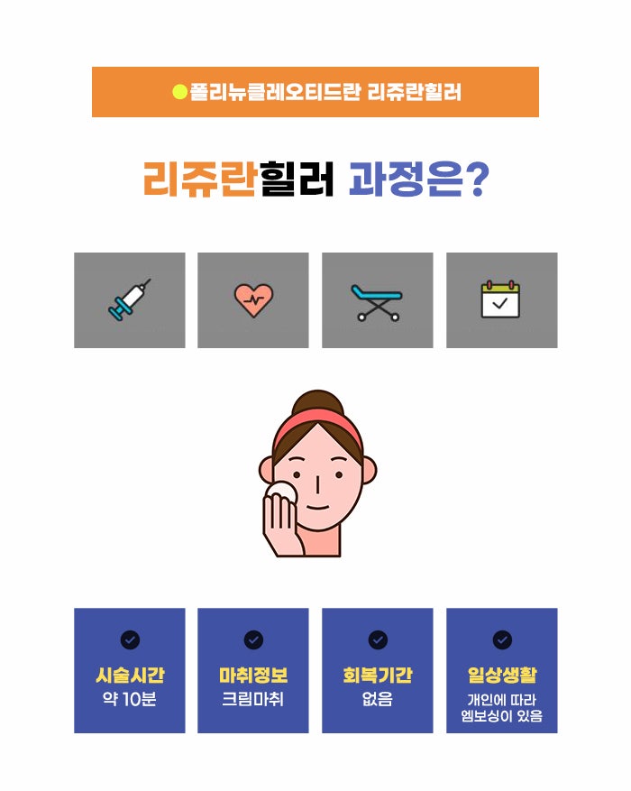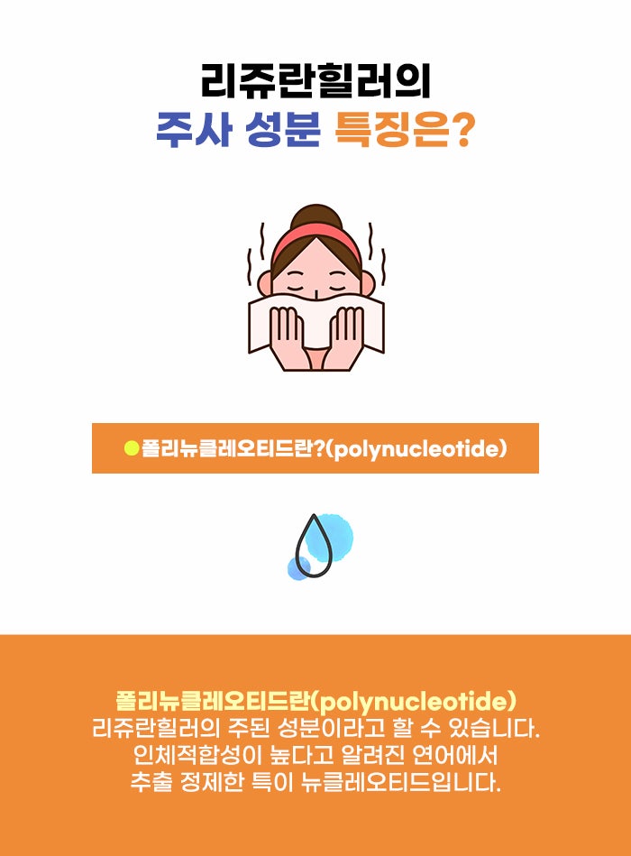 강남 리쥬란힐러 손주사 PN 성분은 연어에서 추출한 특이 뉴클레오티드 성분이라고 합니다. 폴리뉴클레오티드는 열에 안정적이면서 인체 적합성도 높다고 알려져 있다고 하는데요. 피부 속 환경 변화가 필요하고 피부 재생 능력이 필요할 때 이를 돕고 피부 구조를 복원하는 것에 도움을 기대할 수도 있다고 합니다. 그렇기에 피부가 지친 것 같을 때, 모공이 넓어질 때 강남 리쥬란힐러 손주사 알아볼 수도 있다고 합니다.