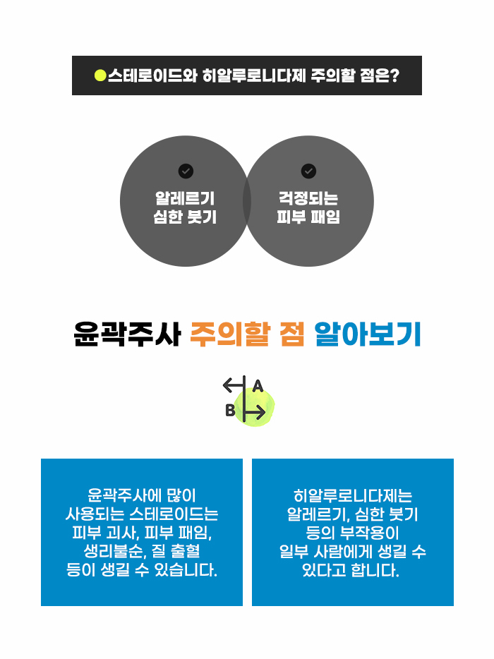강남 윤곽주사 추천 정보 알아 보는 분이라면, 스테로이드 성분이나 히알루로니다제 성분이 걱정된다는 분도 있습니다. 이런 성분이 사람들에게 전부 큰 문제를 일으키는 것은 아니지만, 일부는 이 성분으로 인해 걱정될 수도 있는데요, 피부 패임과 괴사, 부정 출혈 등의 문제, 심한 부기와 알레르기 같은 문제가 생길 수도 있습니다. 그렇기에 이런 성분이 없는 관리를 택하는 게 더 좋을 수도 있다고 합니다.